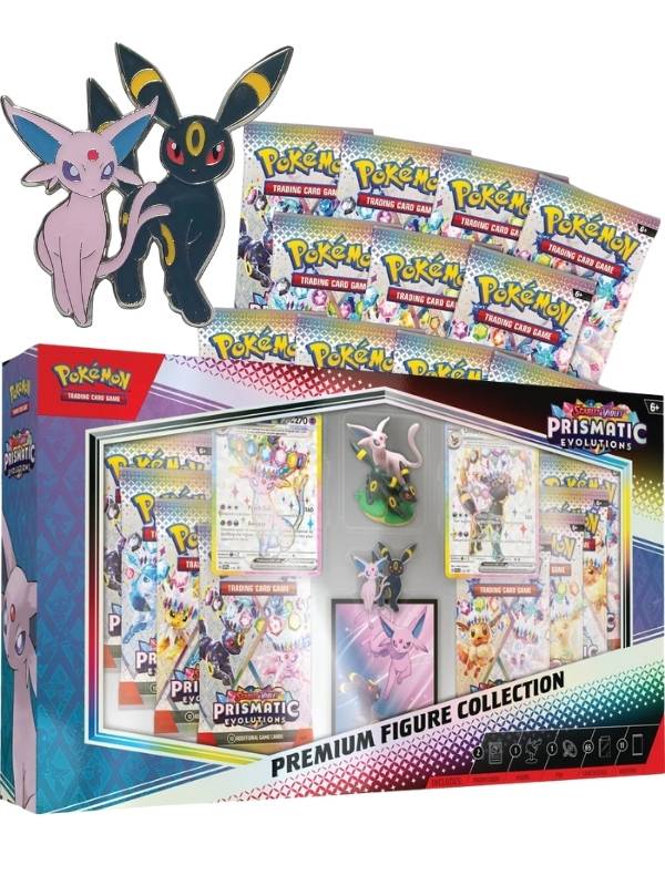 Løft din Pokémon-samling med denne eksklusive Premium Figure Collection fra Pokémon TCG med de to populære Eeveelutions Espeon og Umbreon i deres imponerende Stellar Tera-udgaver. En samlerboks fyldt med både spilværdi og unikke samleobjekter – perfekt til fans, samlere og spillere.