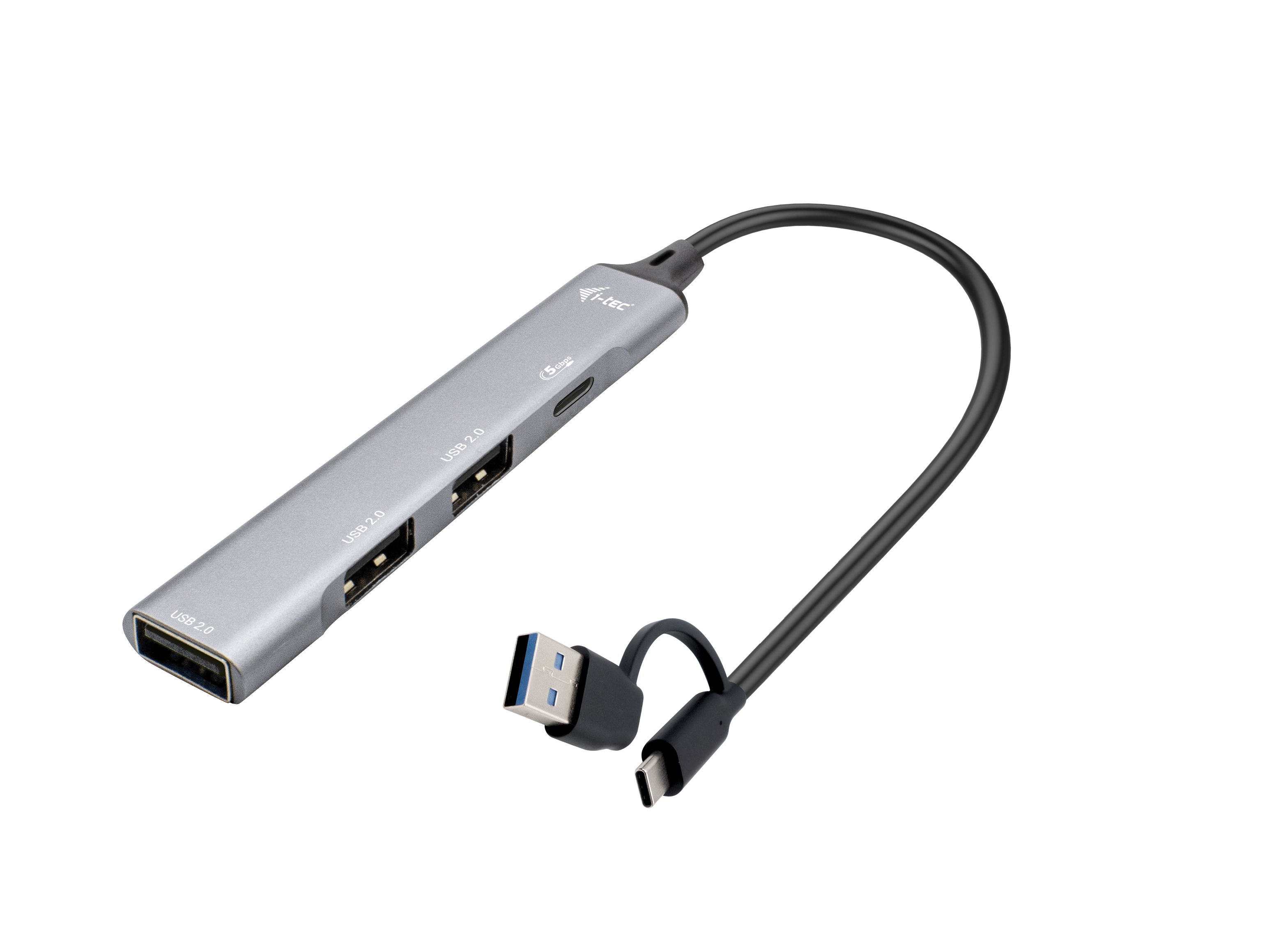 USB and Thunderbolt” 3 or 4 are increasingly popular ports on today’s laptops and tablets. Along with their increasing use, the number of USB ports on the body of laptops is decreasing. And if you need to connect accessories to your device that you don’t already have enough ports for, you can use this small but handy hub. With this hub, you get 4 additional USB ports: USB-C, and three USB 2.0 ports. Connect an external keyboard and mouse, transfer data or movies from a USB flash drive at speeds up to 5 Gbps or charge your mobile devices (standard USB speed 0.9A). The Hub requires no drivers to install, just plug it in with the USB cable and you can start using it right away. The Hub has built-in surge protection for your computer in case of short circuits on peripherals. Thanks to its compact size and light weight, you can always carry it in your bag – the metal surface protects the hub from damage and scratches. Specifications 1x integrated USB-A/USB-C cable for connection to th