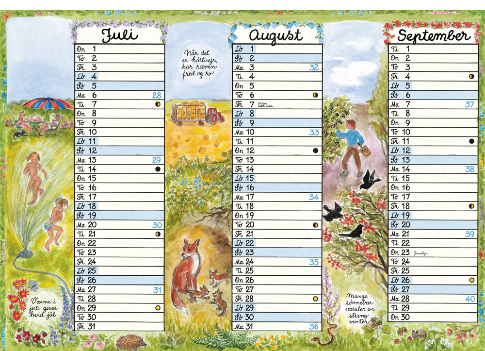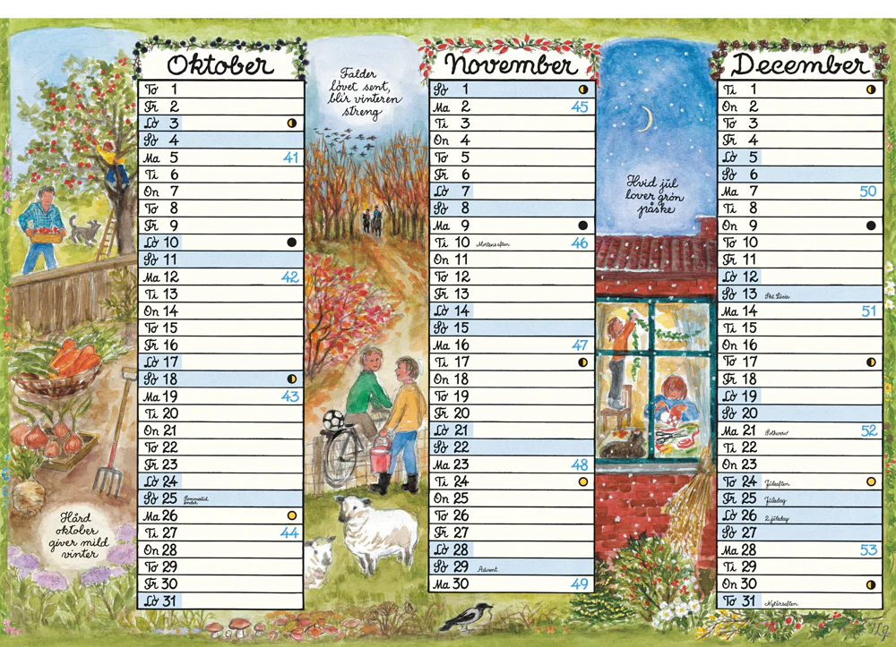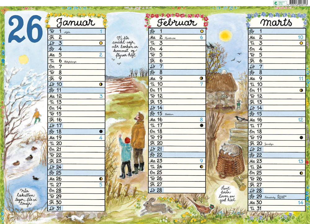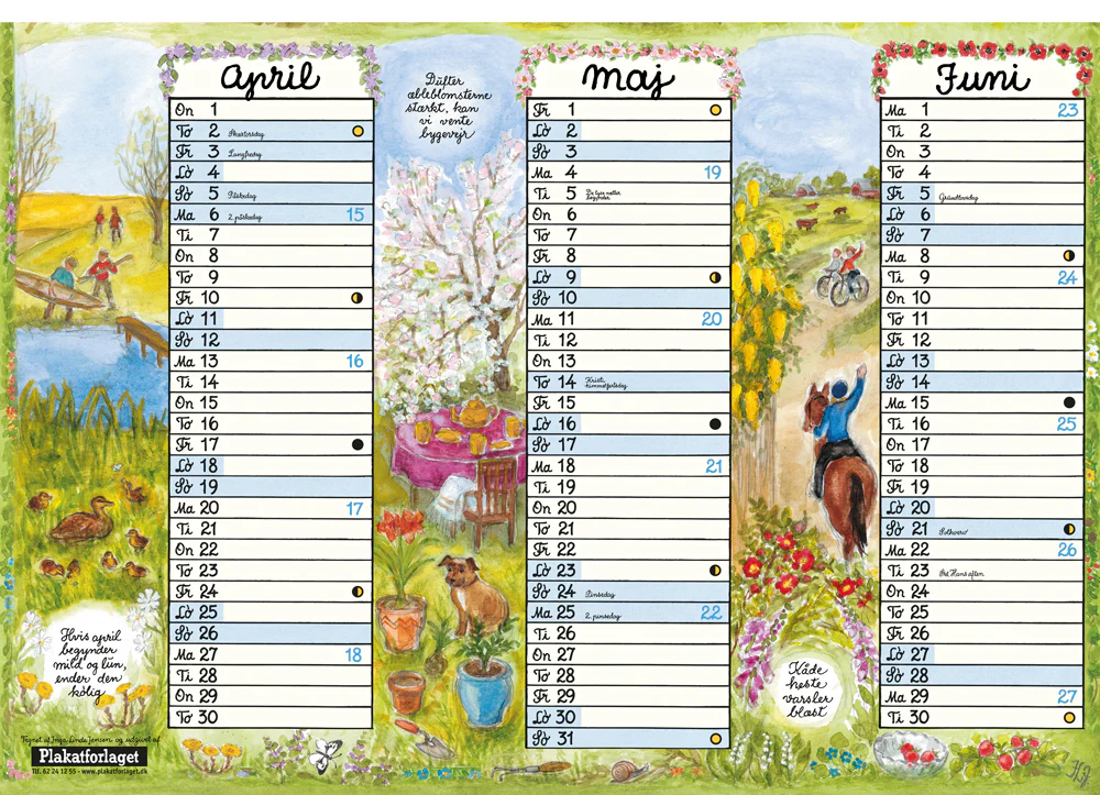 • Alternativt som to halvårskalendere (65 × 90 cm) eller hængt enkeltvis i række