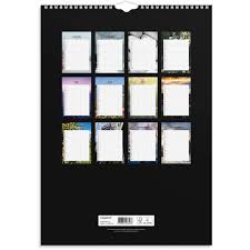 Familiekalender i karton til vægophæng. Vægkalenderen er spiralindbundet og har 12 moderne illustrationer. Hver måned er opdelt i 5 kolonner, så hvert familiemedlem har sin egen kolonne og skriveplads til at notere aktiviteter og aftaler.
