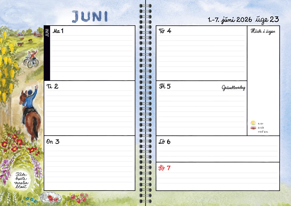 • Hver uge får sit eget opslag – praktisk layout i størrelsen 15 × 21 cm (åben: 30 × 21 cm)