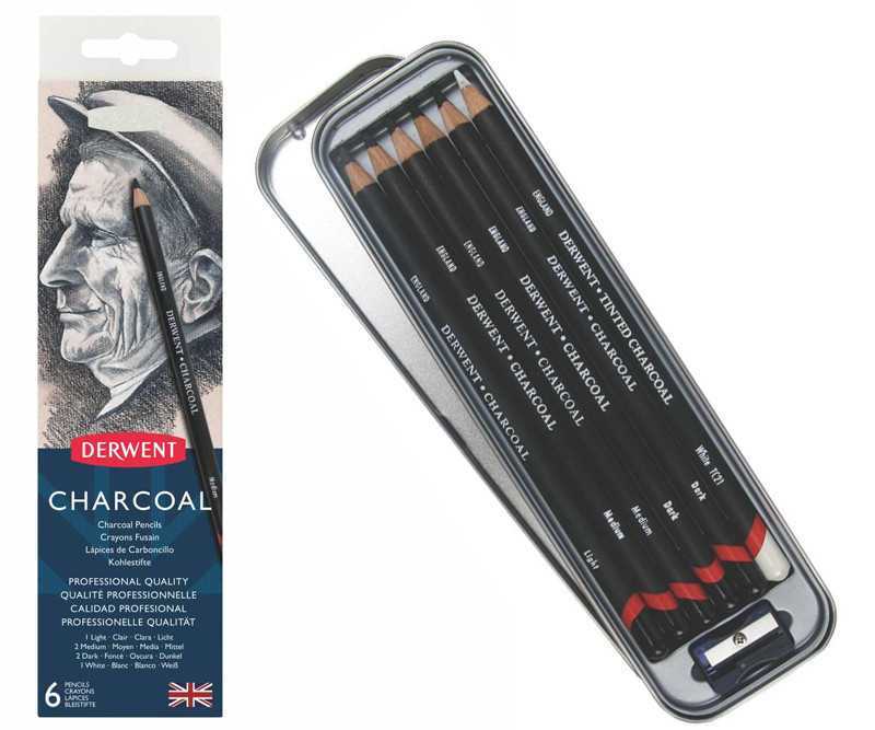✏️🖤 Derwent Charcoal – 6 stk. metalæske