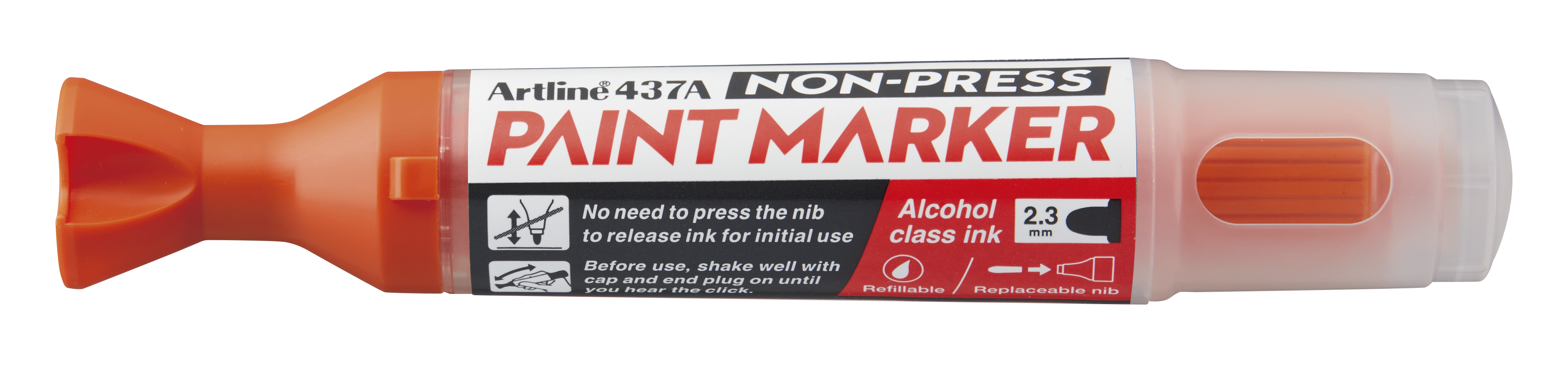Non-press paint marker! Paint marker with no pumping needed,designed for long use with refillable inks and replaceable nibs. Permanent, instant drying & waterproof ink. Xylene free. Durable, replaceable nib. Ink is refillable, refill ink 60ml, approximately 9 refills! 13 colour variations, 2.3mm bullet nib. Suitable for marking most surfaces, ideal for use in construction industry, factories, schools and for art-craft workers. Before use, shake well with cap and end plug on until you hear the click.   Refillable and does not need to be disposed.