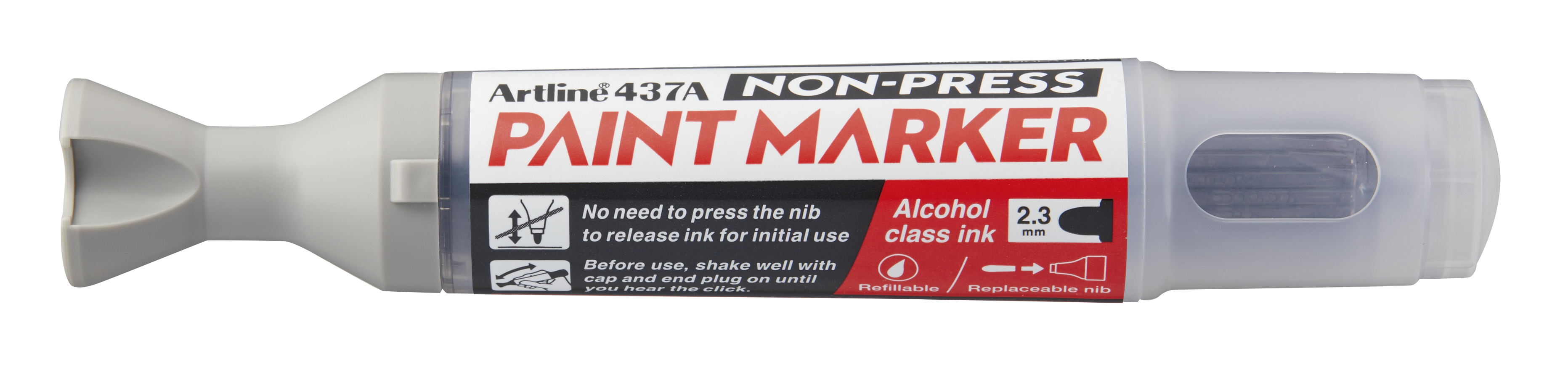 Non-press paint marker! Paint marker with no pumping needed,designed for long use with refillable inks and replaceable nibs. Permanent, instant drying & waterproof ink. Xylene free. Durable, replaceable nib. Ink is refillable, refill ink 60ml, approximately 9 refills! 13 colour variations, 2.3mm bullet nib. Suitable for marking most surfaces, ideal for use in construction industry, factories, schools and for art-craft workers. Before use, shake well with cap and end plug on until you hear the click.   Refillable and does not need to be disposed.