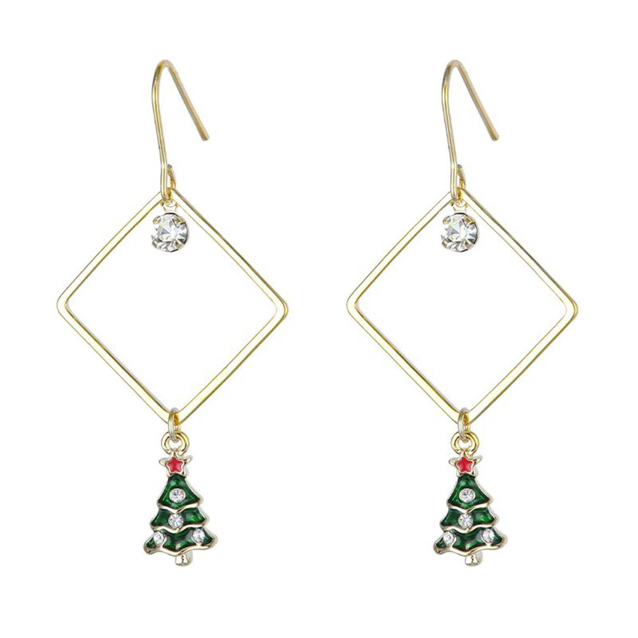 Flotte juleøreringe, som forestiller en firkant med et juletræ som vedhæng.