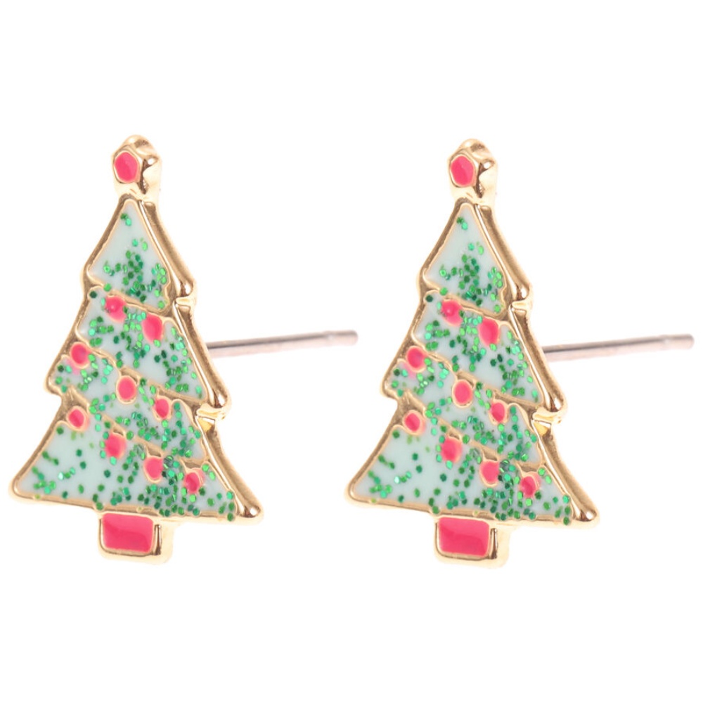 Flotte juleøreringe, som forestiller et juletræ med pynt.