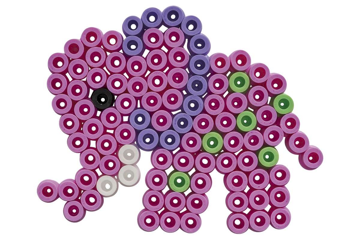 Et kreativt sæt perfekt til børn, der elsker at bygge perlemotiver. Sættet indeholder omkring 600 store Maxi-perler i forskellige farver, to gennemsigtige stiftplader med løve- og elefantmotiv, motivark, vejledning og strygepapir.