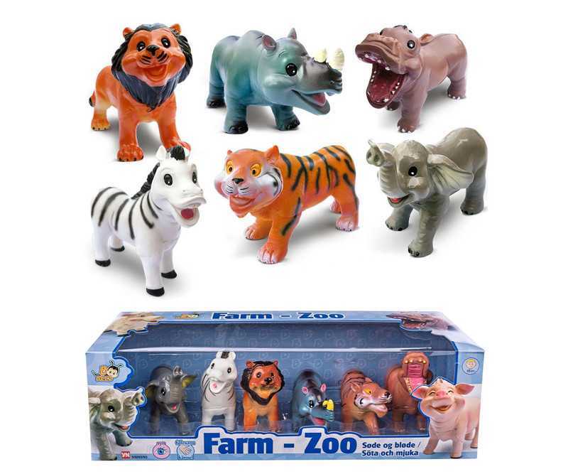 Et sæt med 6 bløde og farverige vilddyrfigurer, designet til små børn. Dyrene er ideelle til motorisk leg og fantasiudvikling, og de kan nemt vaskes af med en fugtig klud ved behov.