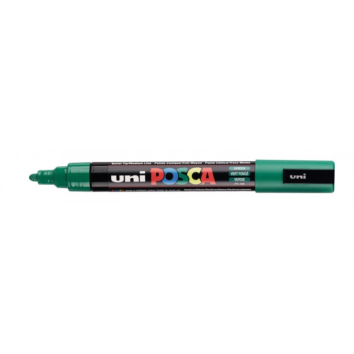 Posca PC-5BR Green er en vandbaseret akrylblæk-marker med fleksibel børstespids (brush tip), der er designet til både præcise streger og bredere penselstreger — alt afhængig af, hvor meget tryk du bruger.