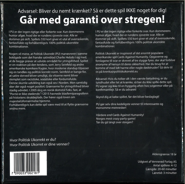 Politisk ukorrekt er et selskabsspil, der minder om den populære engelske "Cards Against Humanity!