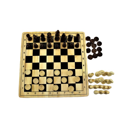 Stort skak og dam sæt med massiv plade.