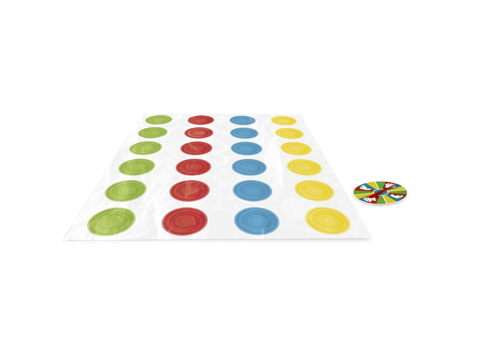 Hvis du ikke kender til dette spil, går det i al sin enkelthed ud på, at den store måtte med forskelligt farvede cirkler spredes ud på gulvet. Efterfølgende drejer man poå hjulet for at se hvilken legemsdel man skal placere på hvilken farve.