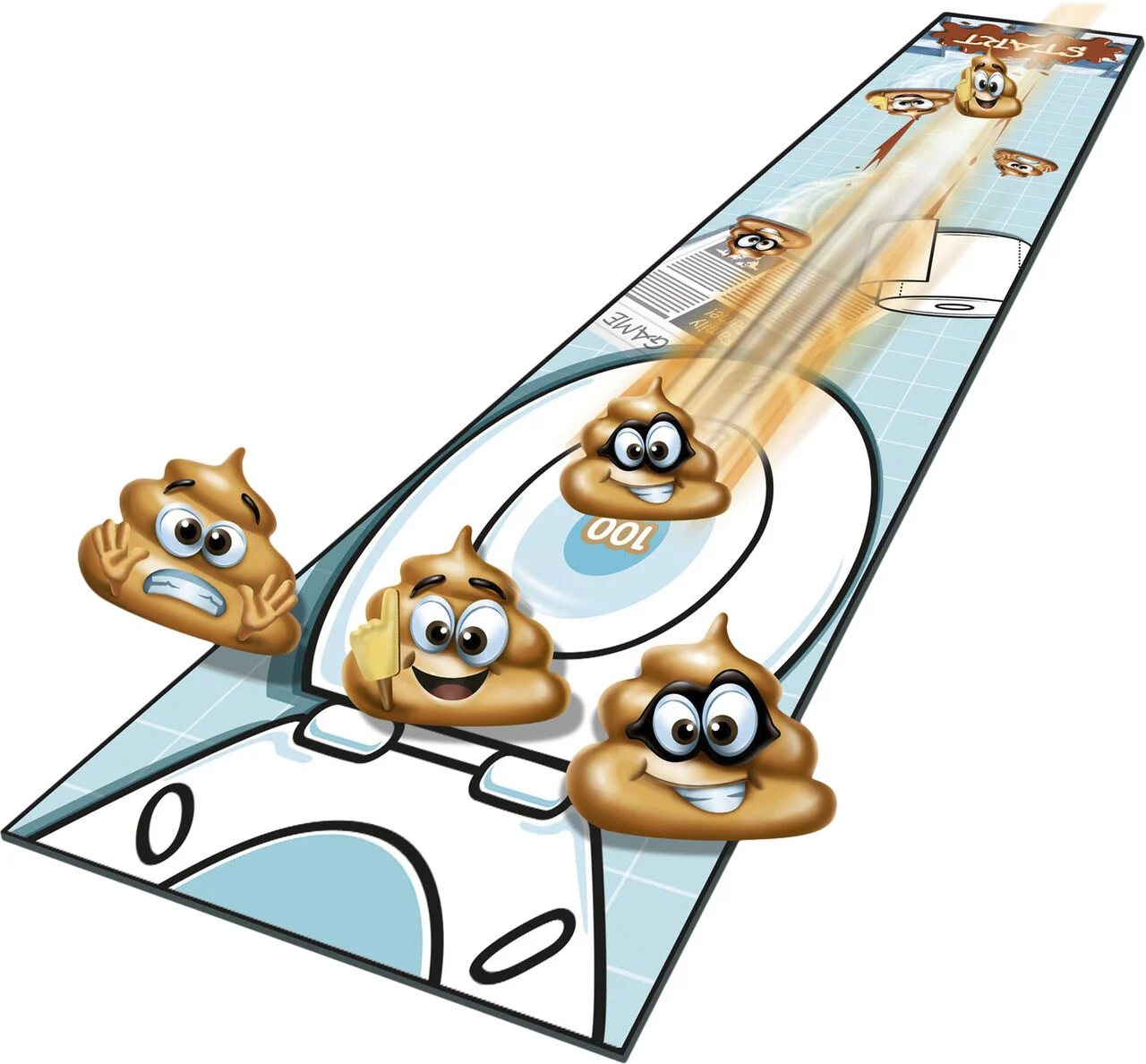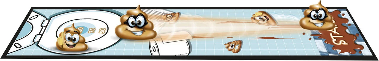 Shit bordcurling. Sæt med gummimåtte på 90x20 cm, 6 lorte sten og spillevejledning. For 1-6 spillere. Fra 4 år.