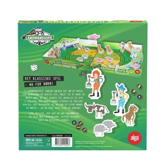 Det klassiske spil, nu til børn. Det ekstremt populære spil er tilbage i en juniorversion! Det her gælder om at passe på sin bondegård på aller bedste vis og sørge for, at alle dyrene får mad. Men vær forsigtig! Nogle gange stikker de drilske dyr af, og så kan der være for meget eller for lidt foder i stalden. Den spiller, der har en god hukommelse og det største held med terninger, bliver dyrenes helt og spillets vinder.