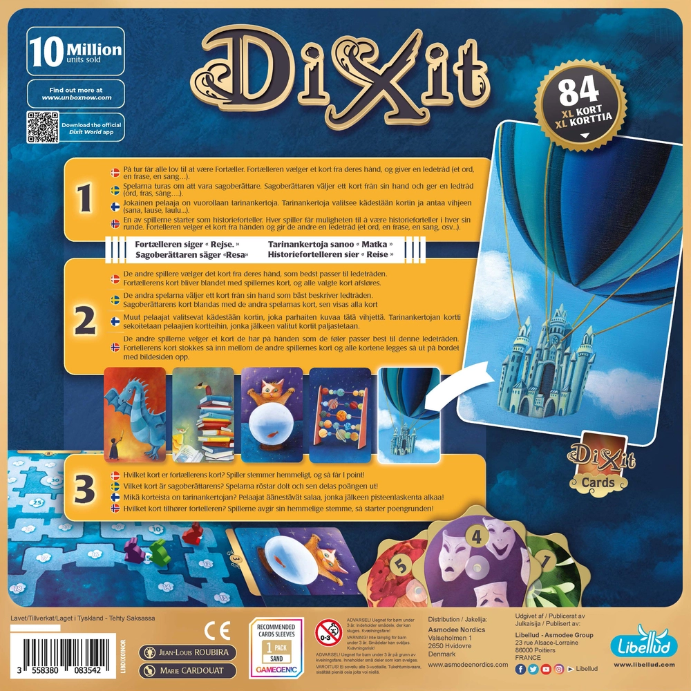 Dixit Nordic Brætspil er et fantastisk og kreativt familiespil, der kombinerer billedkort med fortælling. Udforsk de smukke nordiske illustrationer og lad din fantasi løbe løbsk, når du skal bruge din intuition til at gætte hvilket kort der passer til historien. Med lette regler og uendelige muligheder er dette spil perfekt til en sjov aften med venner og familie, der er 84 kort som giver uendelige muligheder for sjov og underholdning.