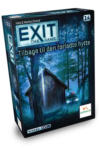 Kryds af for mysterier og samarbejde med EXIT 14: Tilbage til den Forladte Hytte. I vender tilbage til den berygtede hytte, hvor Dr. Arthur Funbeq har undsluppet, og skal løse nye gåder og bryde koder. Spillet er for 1‑4 spillere, fra ca. 12 år, og kræver ca. 60‑120 minutter – perfekt til escape‑fans der elsker udfordringer.