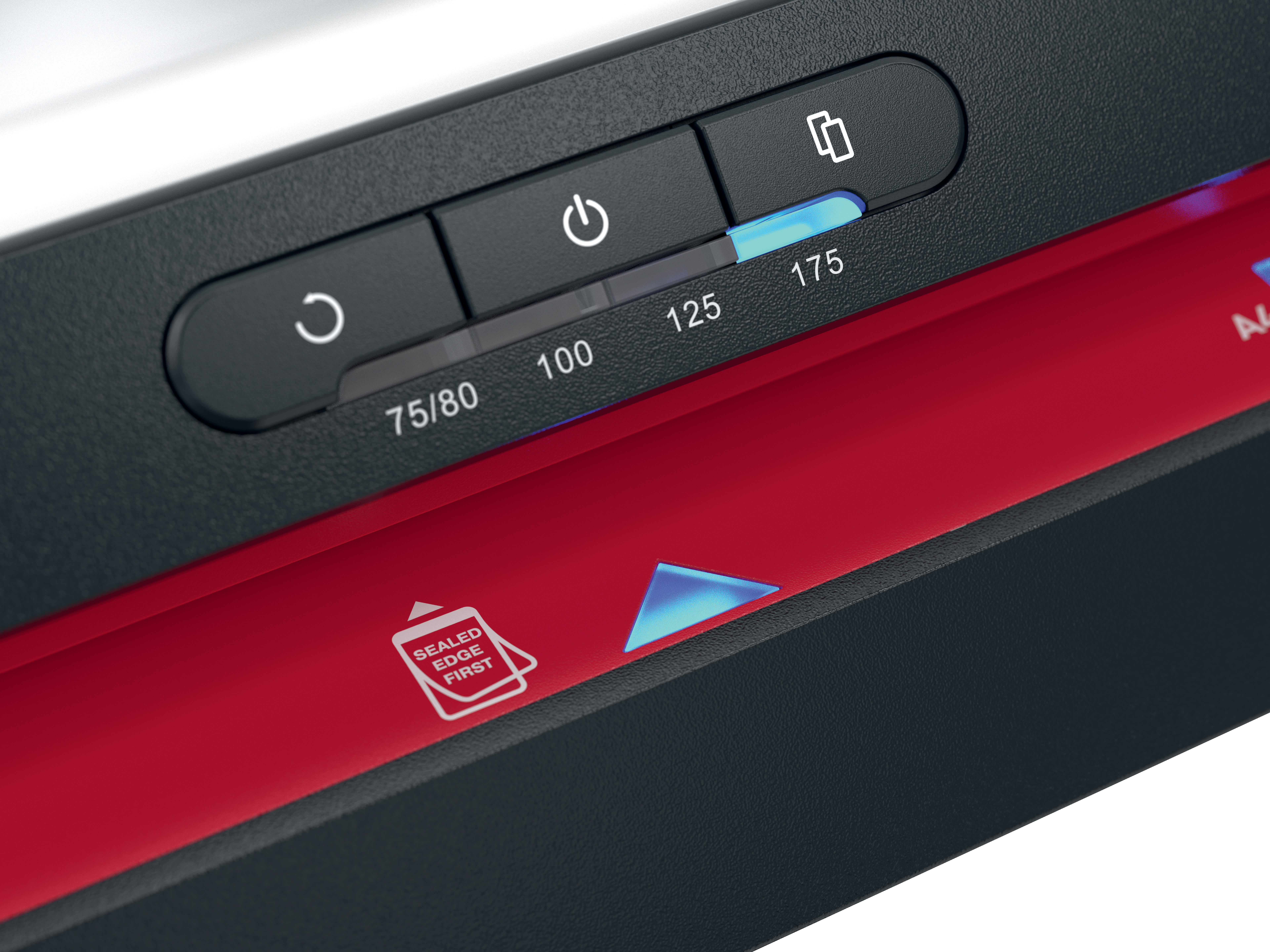 GBC 480HS A3 lamineringsmaskinen er en pålidelig og effektiv løsning til laminering af store mængder. Denne højhastigheds lamineringsmaskine er designet til professionelle miljøer og kombinerer ydeevne med brugervenlighed. Øg produktiviteten og reducer lamineringstiden med 33% ved hjælp af GBC's high-speed lamineringslommer. Med en hurtig opvarmningstid på 1 minut laminerer den et 75-micron A4-ark på bare 23 sekunder, hvilket gør den ideel til hurtige kontoropgaver. Det intuitive kontrolpanel tilbyder fire indstillinger for lommetykkelse fra 75 til 175 microner, hvilket giver fleksibilitet til forskellige dokumenttyper. Panelet har også en manuel reverse-knap og en automatisk retur funktion med aktiv registrering af fastklemning for problemfri udtagning af lommer. Derudover giver SMART status LED-systemet klare visuelle og akustiske signaler: rød under opvarmning, blå med en lyd, når den er klar til brug, og en automatisk slukning efter 15 minutters inaktivitet for at spare energi. SMA