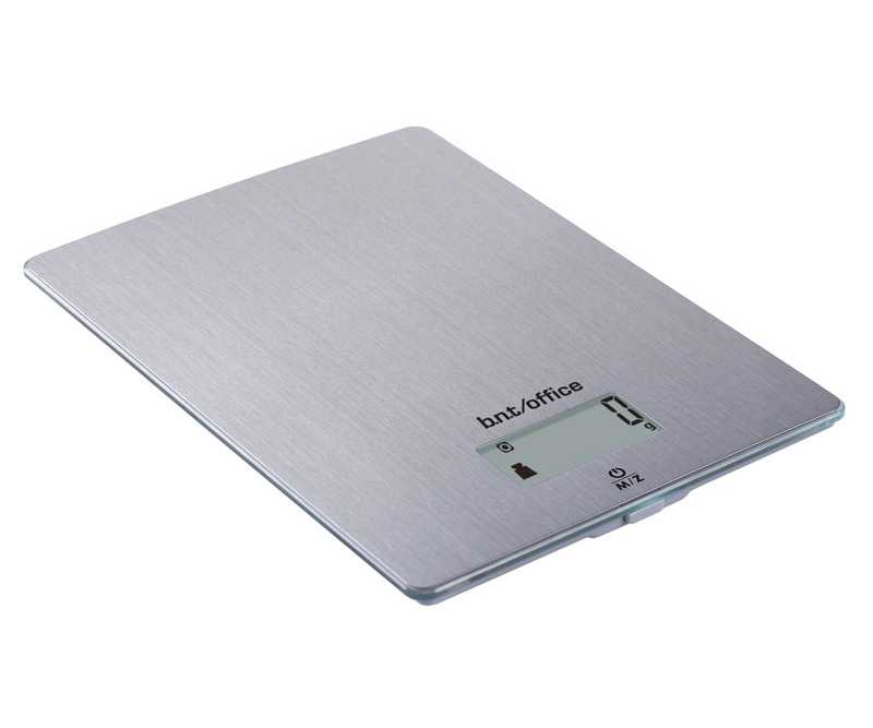 Her får du en elektronisk brevvægt i sølv, med stort LCD-display og automatisk sluk-funktion.