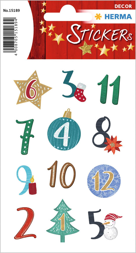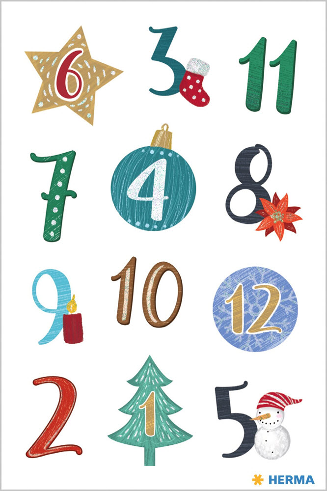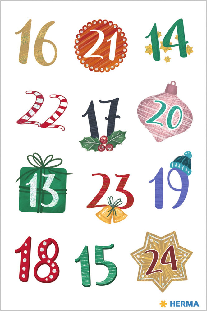 Stickers med tallene 1 - 24 og julemotiver. Perfekt til nummer på pakke kalenderen.