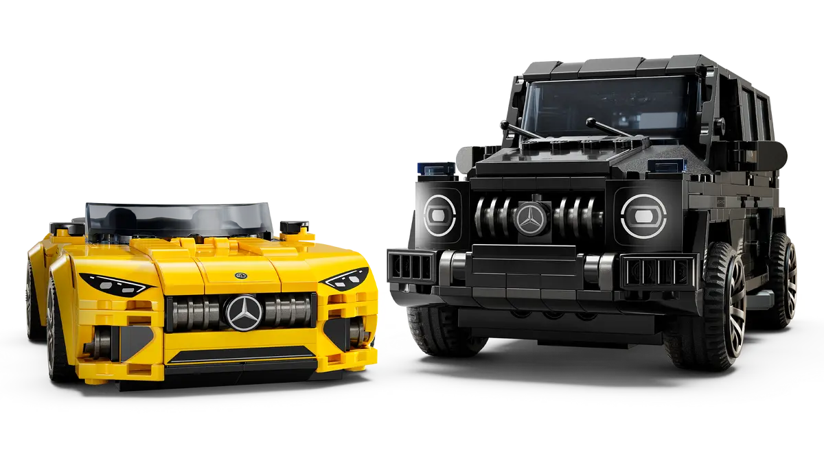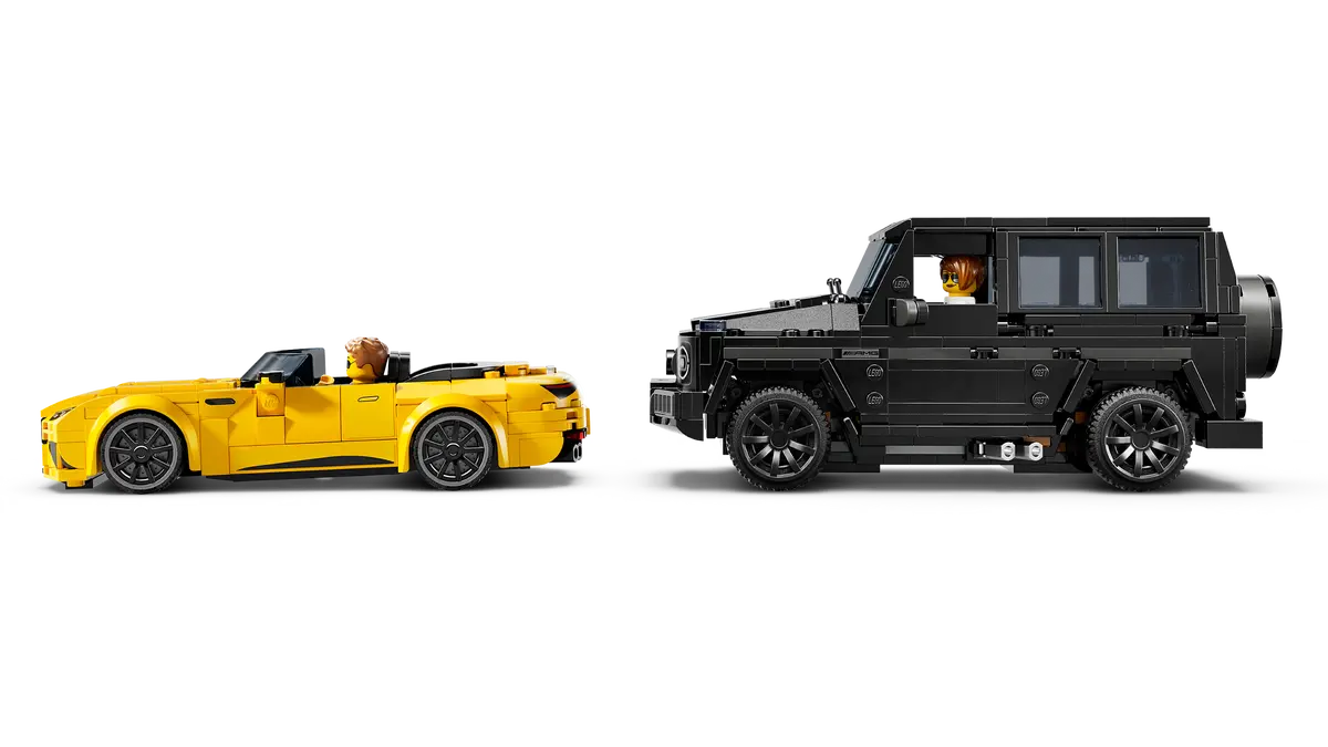 Modellerne af den sorte G-klasse Mercedes-AMG G 63 og den gule roadster-cabriolet Mercedes-AMG SL 63 rummer begge autentiske designdetaljer fra de virkelige versioner, bl.a. kølergitre, motorhjelme og indvendige træk. Hver Mercedes-AMG omfatter også en minifigur af en kører, som børn kan sætte bag rattet og nyde racerløb på banen med.