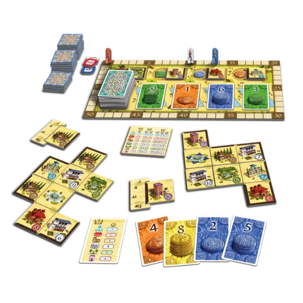 Spillerne køber bygninger, udvider deres by og scorer point gennem flertal i de forskellige bygningstyper. Timing, planlægning og en smule held spiller alle en rolle – og netop balancen mellem strategi og tilgængelighed har gjort Alhambra til en moderne klassiker.