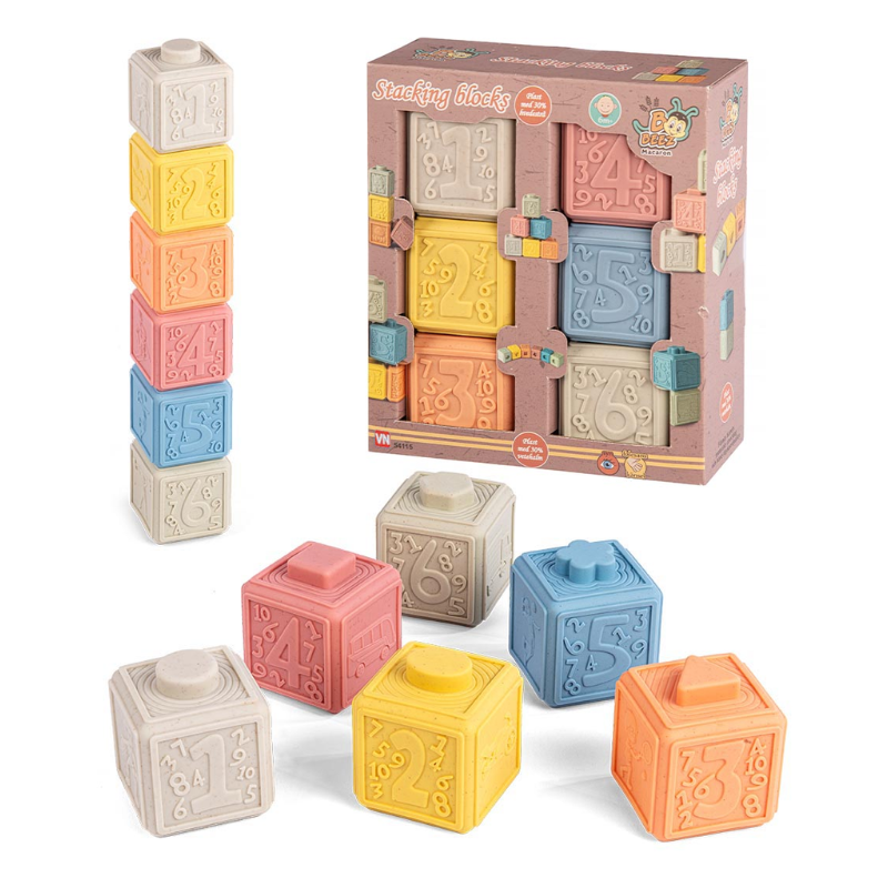 Klodserne kan stables, sorteres og bruges til mange forskellige lege, hvilket stimulerer kreativitet og problemløsning. Sættet er designet til små hænder og er perfekt til både individuel leg og socialt samspil.
