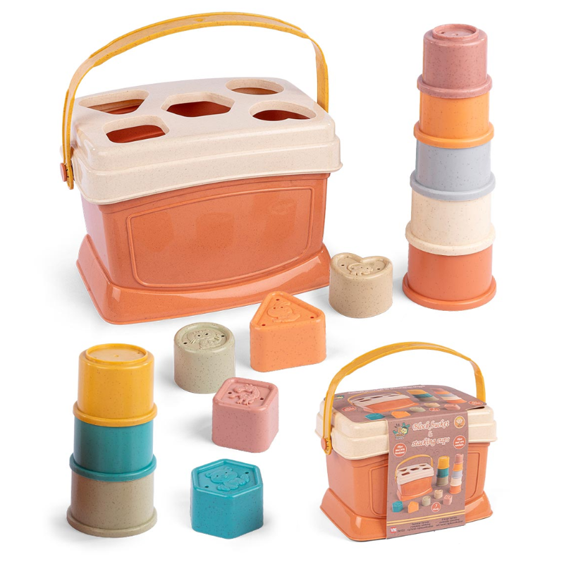 De holdbare kopper er nemme for små hænder at gribe og stable, og de kan kombineres på mange måder, hvilket giver børn uendelige muligheder for kreativ leg. Samtidig styrker legen finmotorik, problemløsning og farvegenkendelse.