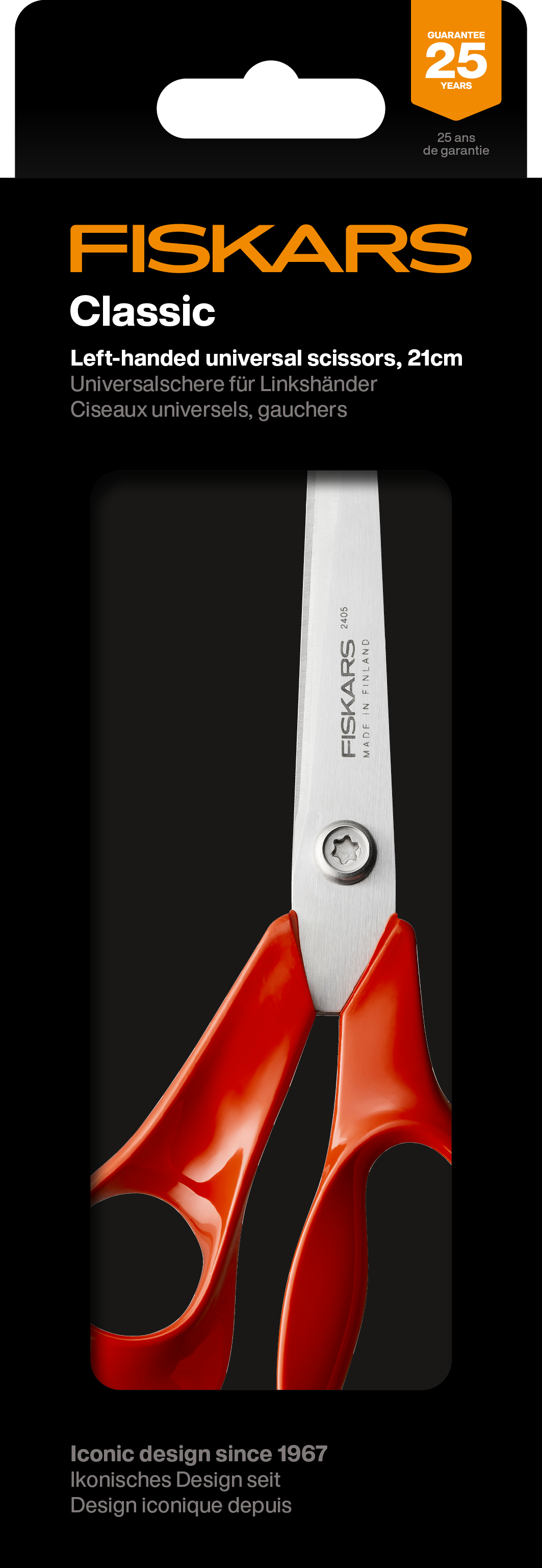 Sakse i den verdenskendte finske kvalitet, i rustfrit stål. Højrehåndssakse har orange håndtag og venstre-håndssakse har rødt håndtag. Sakseskærerne er hærdet i en særlig ovn, der øger levetiden på saksen. Stålet er af samme kvalitet, som anvendes til rustfri barberblade. Alle sakse leveres med sikkerhedsetui. Specialplasten til håndtagene gør saksen utrolig alsidig i anvendelse.