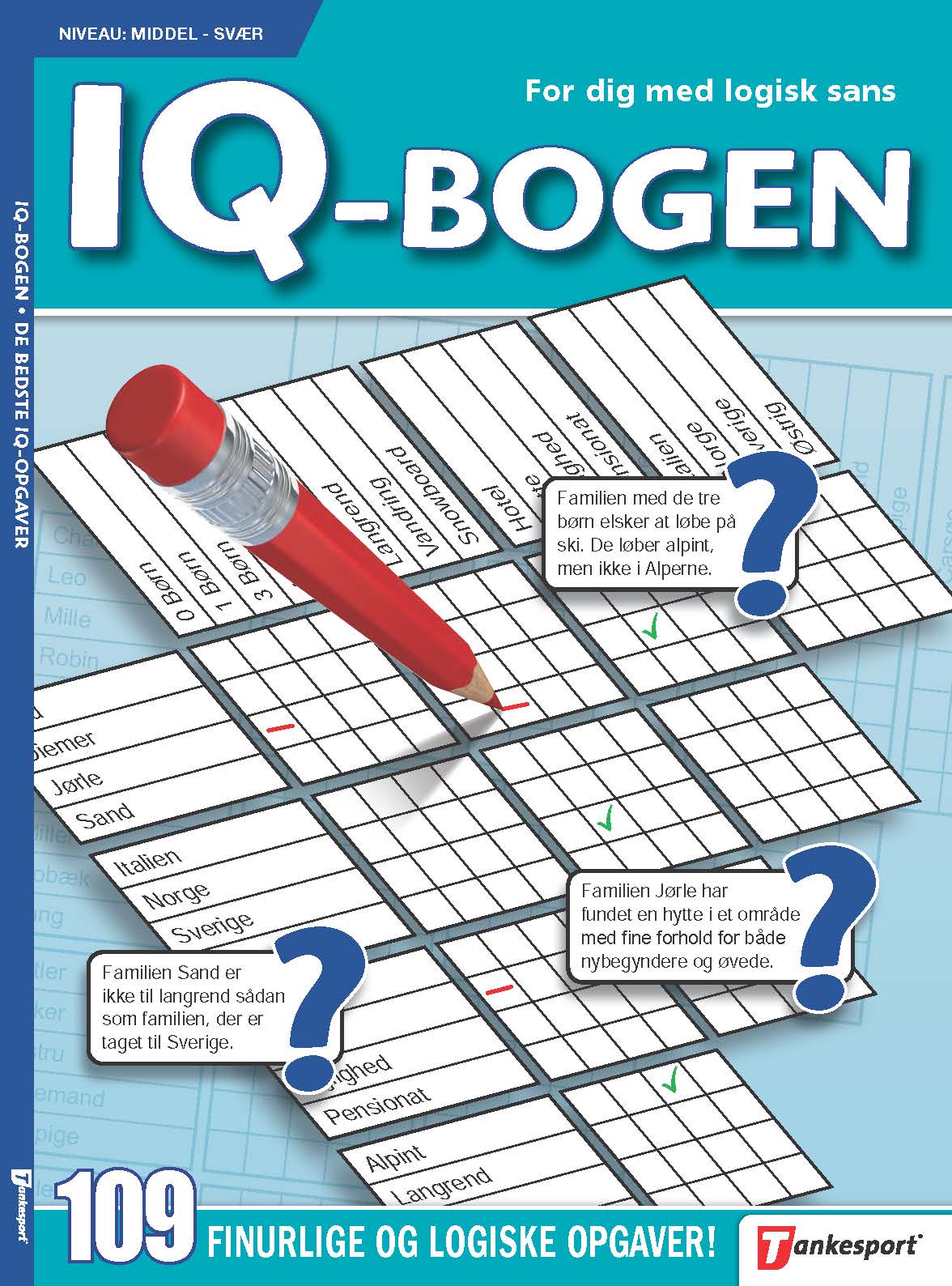I IQ-bogen finder du de bedste af Tankesports populære IQ-opgaver. Sæt hjernecellerne på prøve med de sjove hverdagshistorier, der indbyder til mange timers underholdning og logisk tænkning.