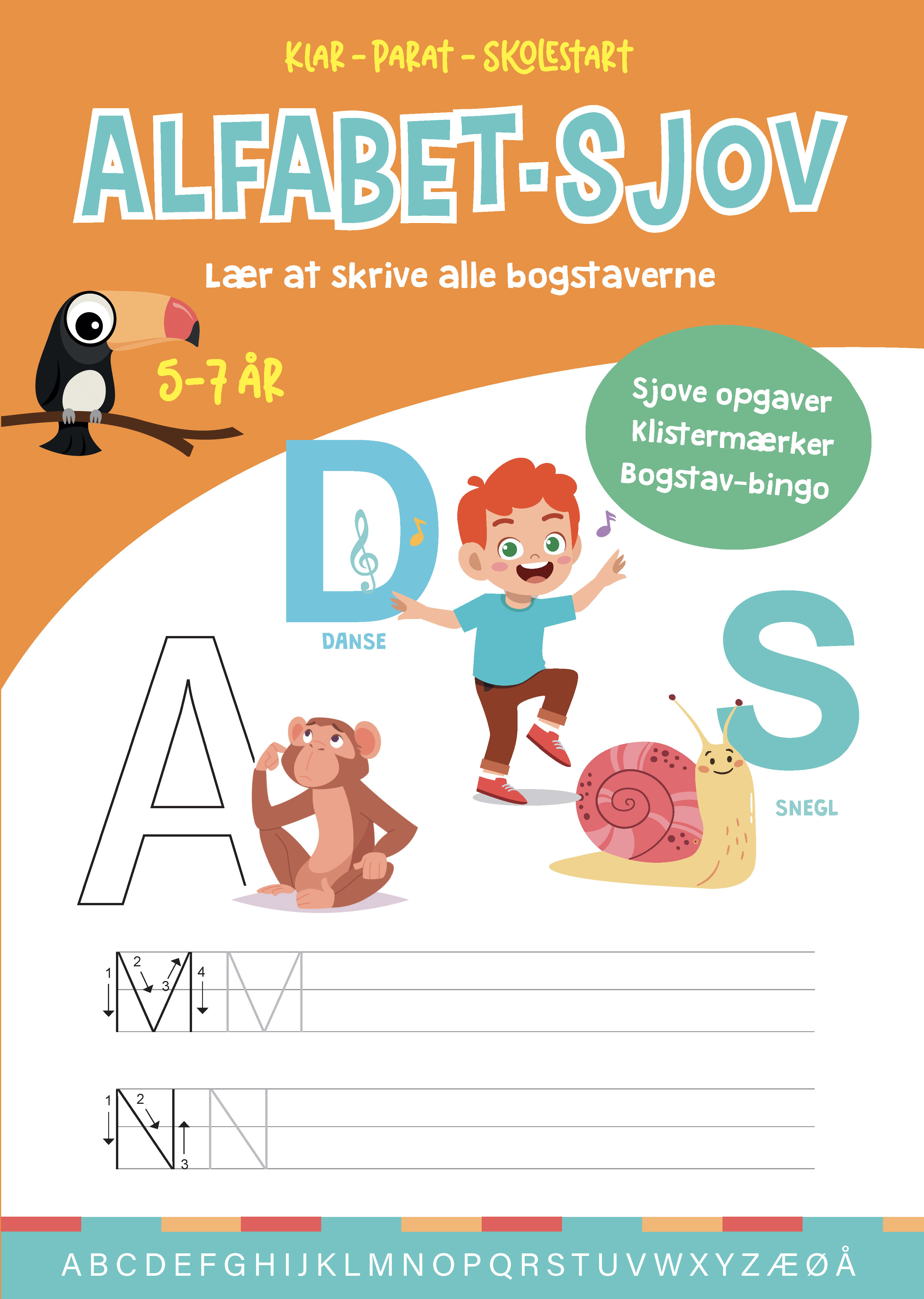 I denne opgavebog lærer du alle 29 bogstaver i alfabetet.