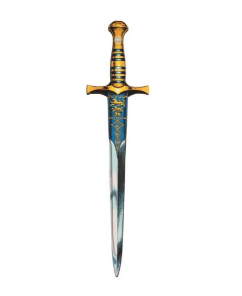 Hør her, unge ridder! Hvorfor nøjes med et almindeligt sværd, når du kan få et, der kommer med tre løver på? Én løve siger “mod”, to løver siger “konge”… men tre løver råber “Jeg er den ubestridte hersker af stuen, køkkenet og baghaven!”
