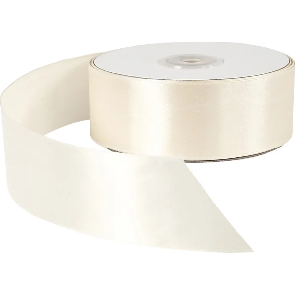 Med dette satinbånd i creme farvet, får du et bånd som er 38 mm bred og 50 m langt.