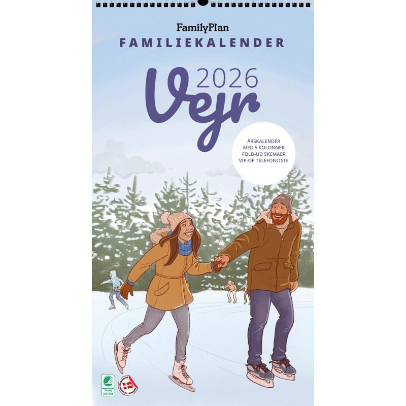 FamilyPlan Årskalender 2026 – Vejr (5 personer) er en praktisk vægkalender, der hjælper med at organisere familiens aktiviteter i det kommende år.