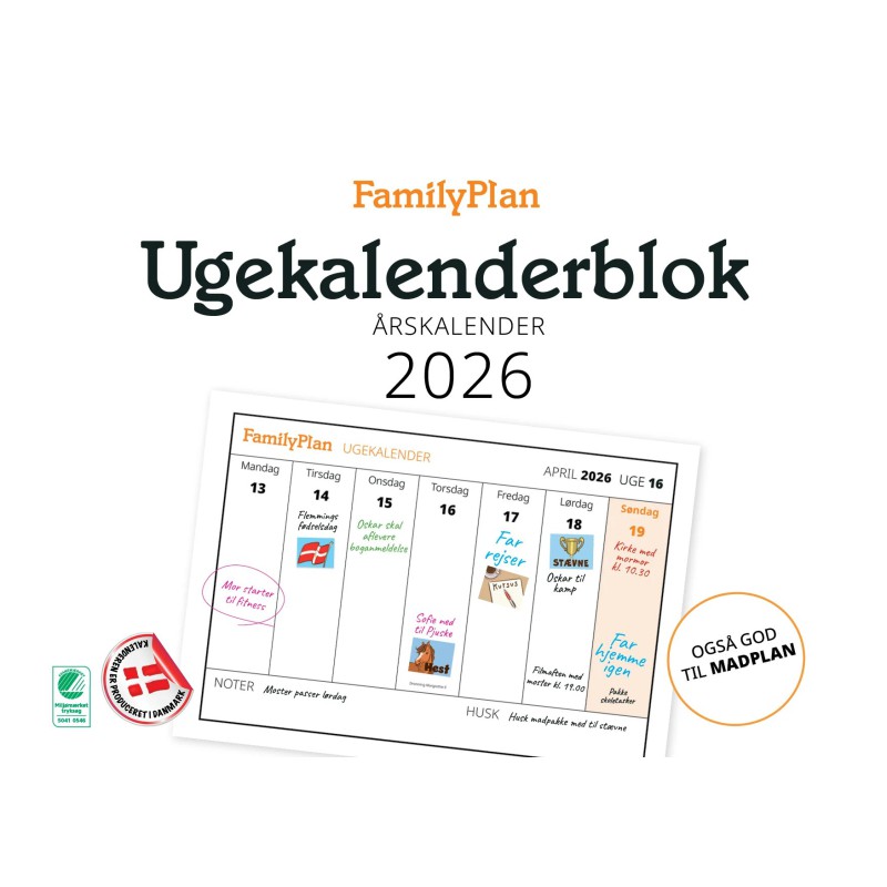 Denne kalender blok er praktisk, som hele familiens redskab til planlægning. Du har et godt overblik, med god plads til at skrive ugens aktiviteter ned, så alle kan følge med i hvad hele familien skal.