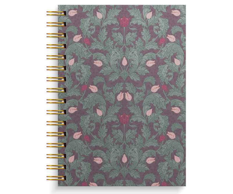 Elegant notesbog i A5-format med dyb bordeaux blomsterprint — perfekt til kreative idéer, dagbog eller noter. En smuk og personlig tilføjelse på skrivebordet.