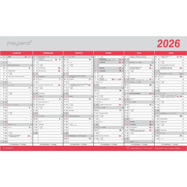 Kontorkalender 2026 – m/ flagdage hjælper dig med at holde styr på alle arbejdsdage, aftaler og danske flagdage i én kalender.