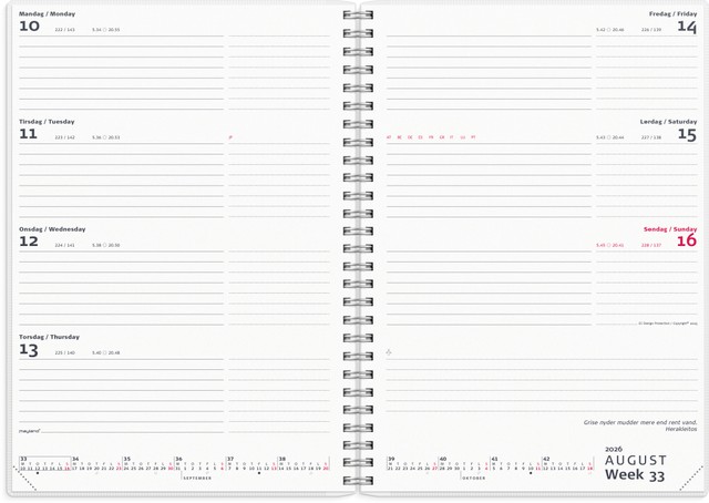 Spiralbinding gør den holdbar og fleksibel i brug.