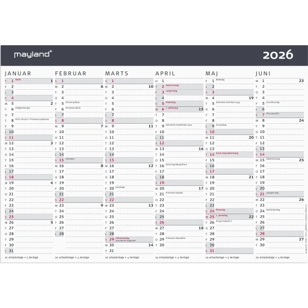 Vægkalenderen giver dig en oversigt med 6 måneder ad gangen, så du hurtigt og nemt kan skabe et godt og overskueligt overblik over året og alle dets aktiviteter.