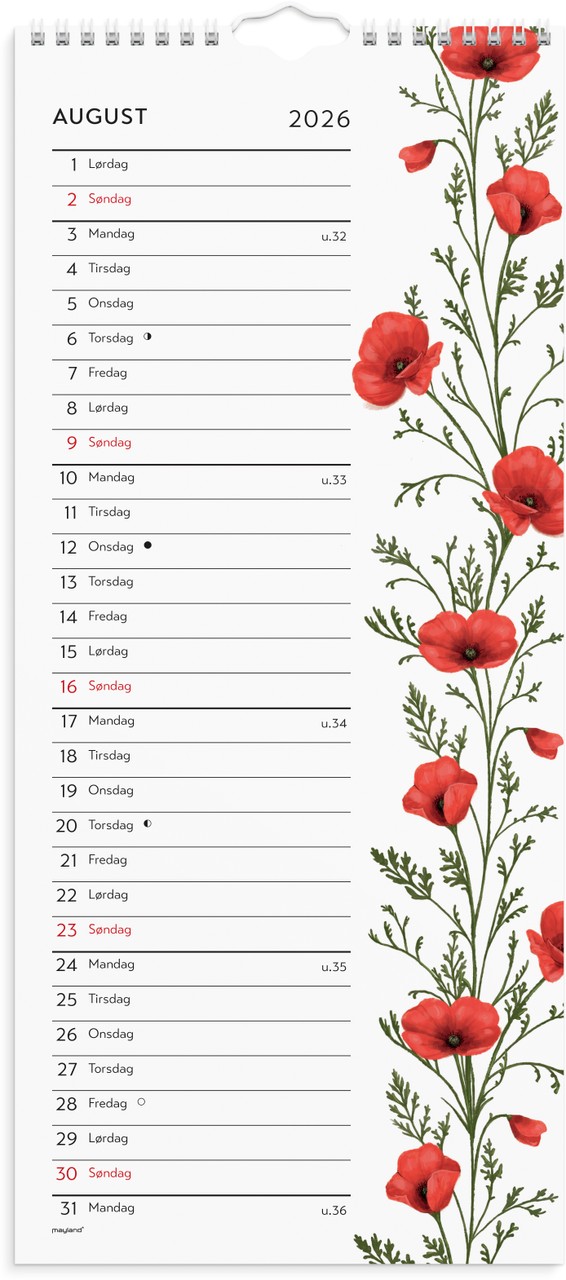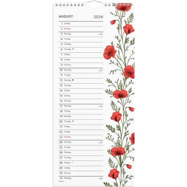 Vægkalenderen giver dig en oversigt over 1 måned ad gangen med plads til noteringer og kan anvendes som familiekalender eller billedkalender.