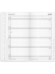 Kalenderen er inddelt med en måned pr. opslag og indeholder et timeopdelt kalenderskema fra kl. 8-18, så du hurtigt kan danne dig et overblik over månedens planer og aftaler. I bunden af månedsopslagene er der angivet, hvor mange arbejdsdage der er den pågældende måned.