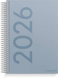 Dagkalender med en farvet forside. Kalenderen er spiralbundet med et omslag i tekstilpræg, hvilket giver kalenderen et flot og enkelt udseende.