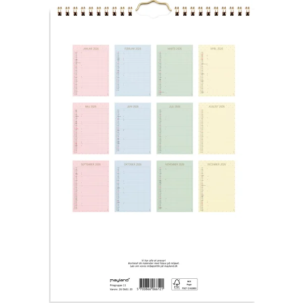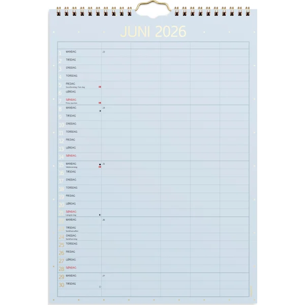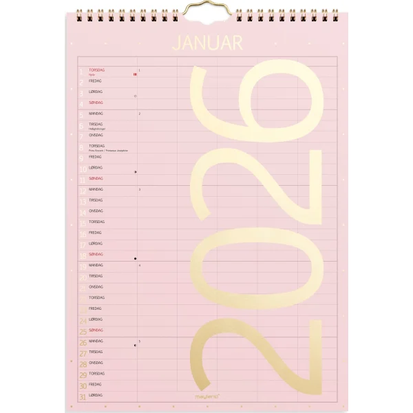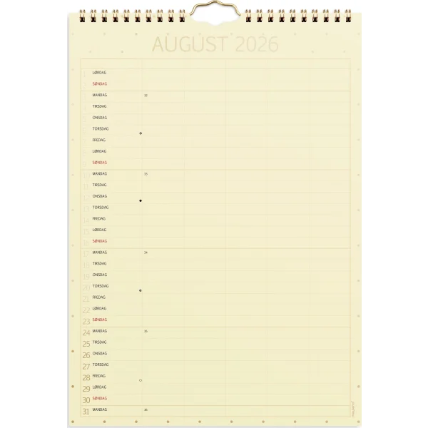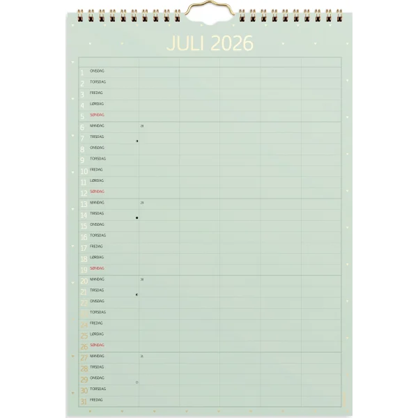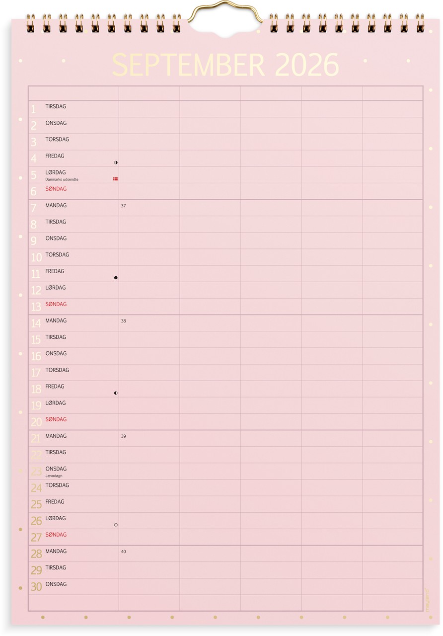 Familie kalender i praktisk og elegant design med skiftende farver.