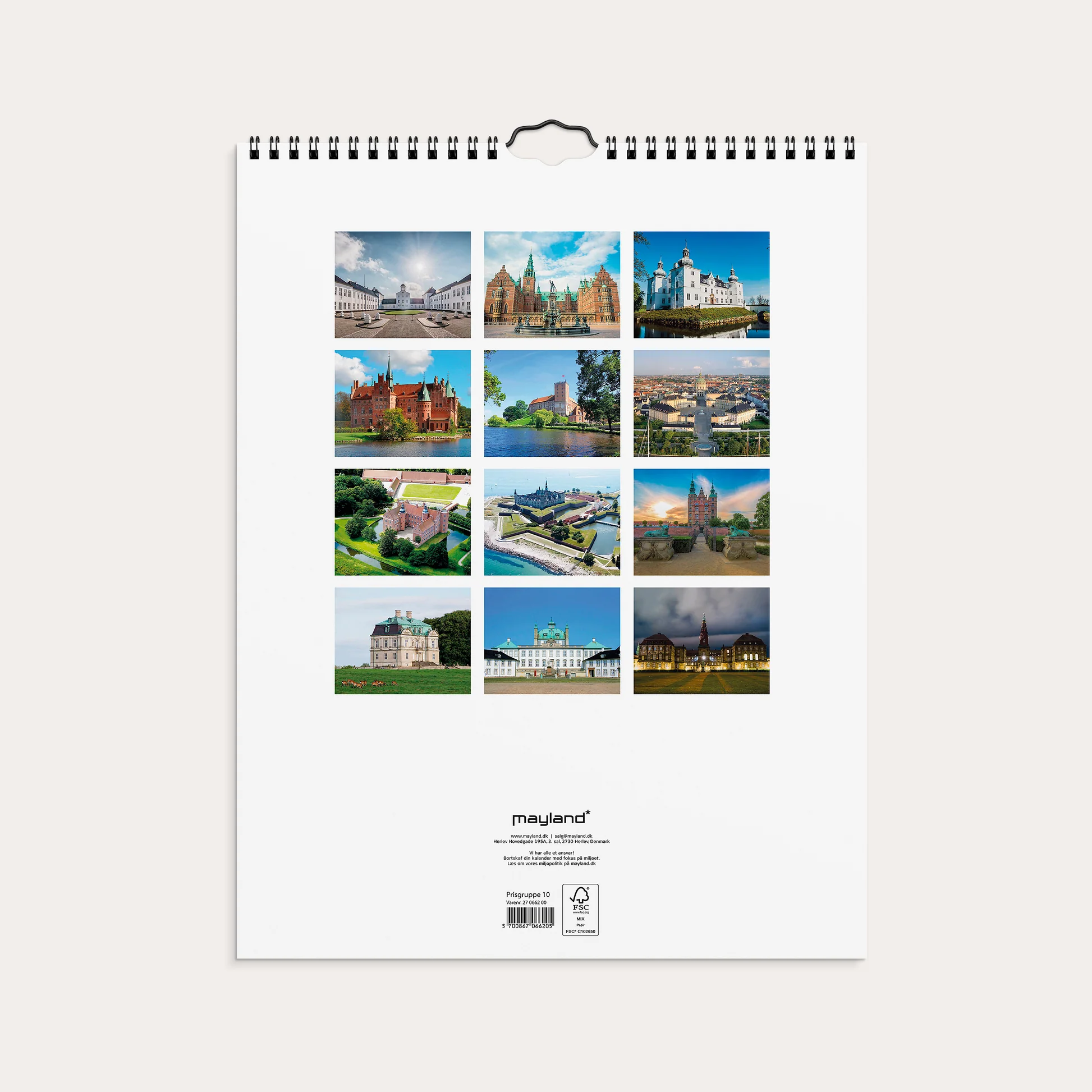Vægkalender i karton med flotte billeder af danske slotte.