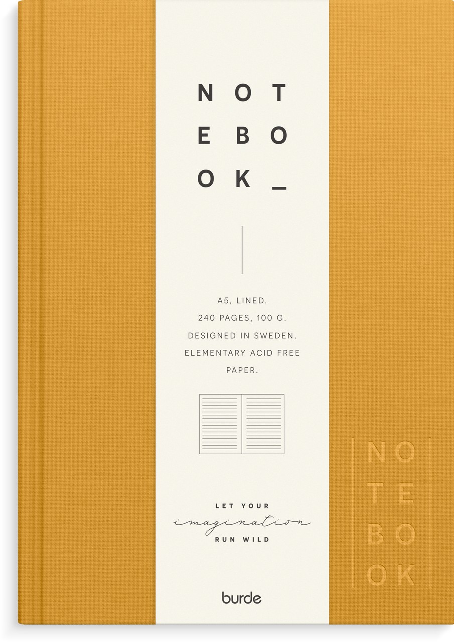 Elegant og stilren notesbog i en smuk Sennepsgul farve, perfekt til dig der elsker at skrive, tegne eller samle dine tanker ét sted. Den tekstilbeklædte forside giver et eksklusivt og behageligt udtryk, samtidig med at den er slidstærk i hverdagen.
