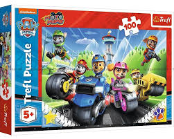 Paw Patrol – Fart er et livligt og underholdende puslespil med 100 brikker, der viser Paw Patrol-heltene på motorcykler, klar til action. Motivet giver en følelse af fart og teamwork, mens børn samler brikkerne. Det færdige puslespil måler cirka 41 × 28 cm, og det anbefales til børn fra omkring 5 år