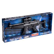 Et legetøjs-maskingevær udstyret med realistiske lydeffekter — ideelt til rolleleg hvor barnet træder ind i politiets eller militærets verden. En enkel, fængende gaveidé til børn der elsker action og eventyr.